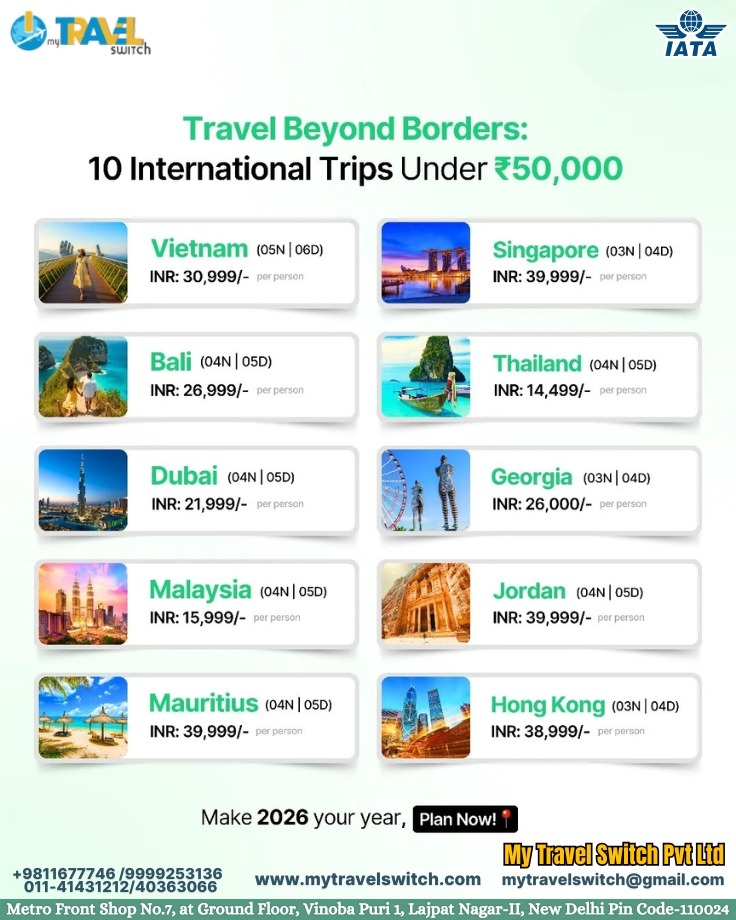 If you are searching for affordable and reliable international holiday packages under ₹50,000, My Travel Switch Pvt Ltd offers the perfect travel solution. Explore top global destinations, enjoy seamless travel planning, and create unforgettable memories without overspending. Start planning your international trip today and make 2026 your year of adventure.