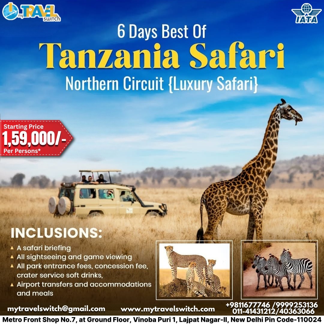 Choose the Best Tanzania Safari Tour Package Services in Lajpat Nagar, South Delhi – My Travel Switch Pvt Ltd. We offer customised local tours, curated itineraries for school holidays, weekend family getaways, and more.