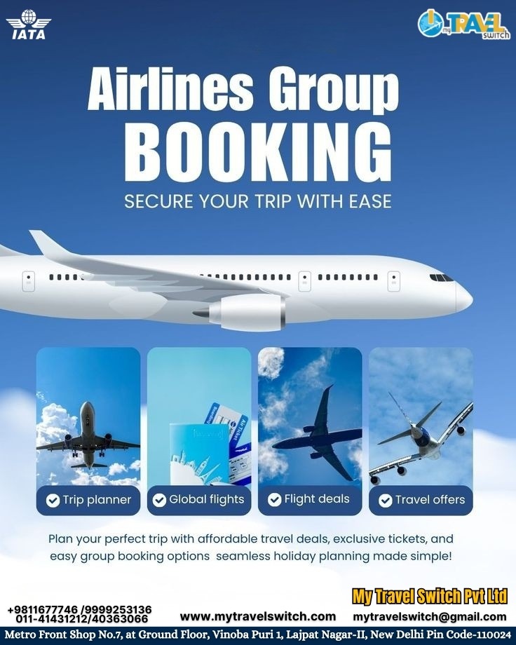 Book airlines group tickets at the best prices with My Travel Switch. Easy group flight booking, exclusive deals, global routes & expert support.