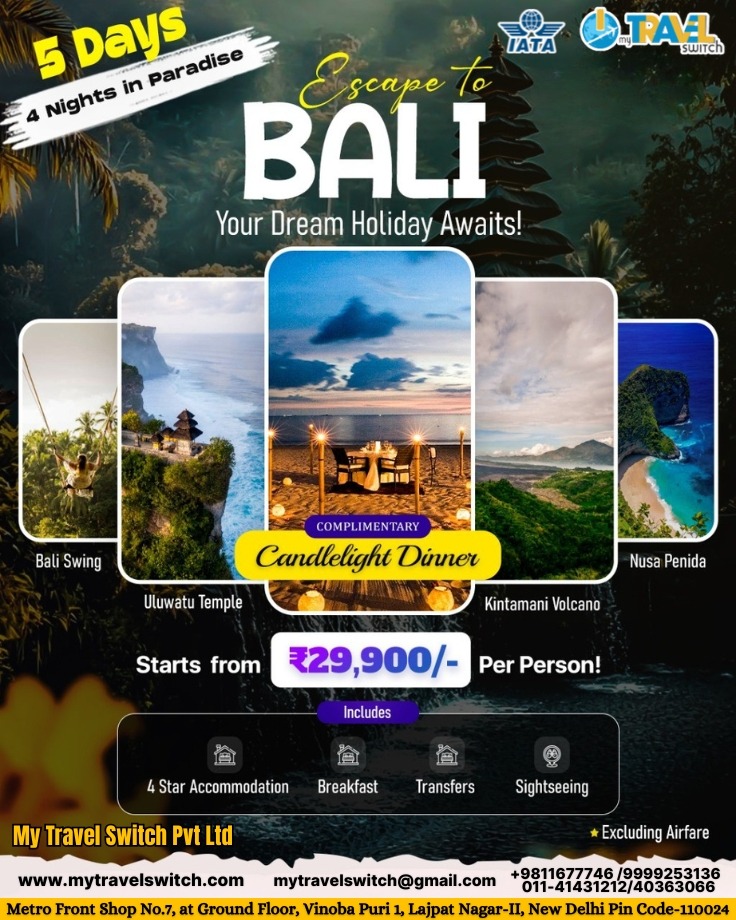 Choose the Best Bali Tour Package Services in Lajpat Nagar, South Delhi – My Travel Switch Pvt Ltd. We offer customised local tours, curated itineraries for school holidays, weekend family getaways, and more.