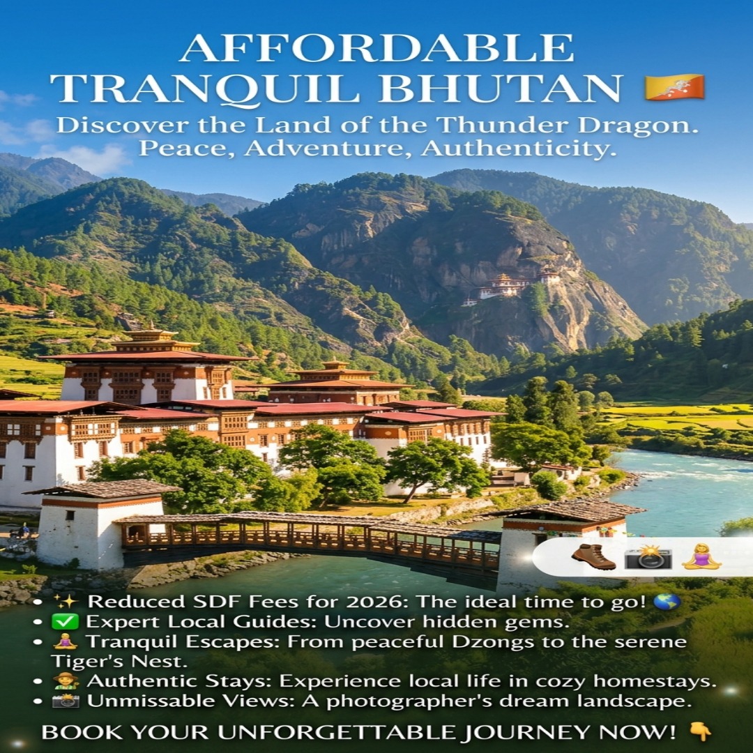 Take advantage of reduced SDF fees in 2026 and plan your Bhutan trip today. Book now to explore this hidden Himalayan paradise and create unforgettable memories!