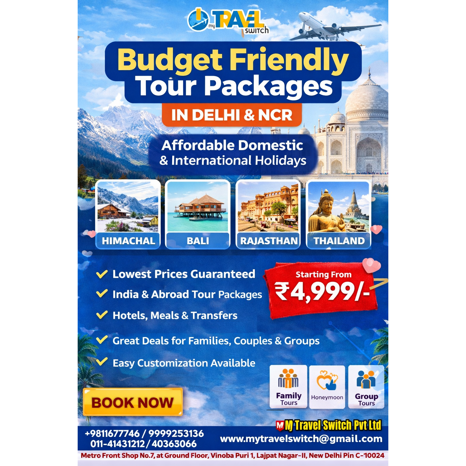 Looking for budget tour packages in Delhi/NCR? Book affordable domestic & international holiday packages with flights, hotels, meals, sightseeing, and transfers. Best travel deals for families, couples & groups at lowest prices.