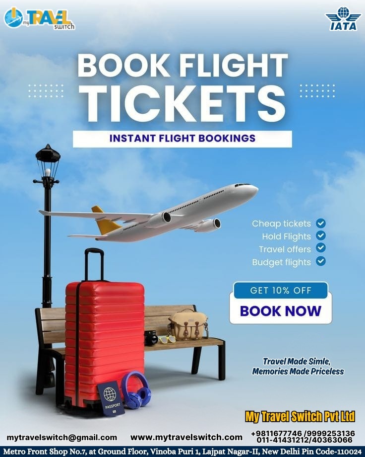 Book cheap flight tickets online with instant confirmation. Get the best deals on domestic & international flights, hold tickets, travel offers, and budget fares. Save up to 10% on flight bookings with My Travel Switch.
