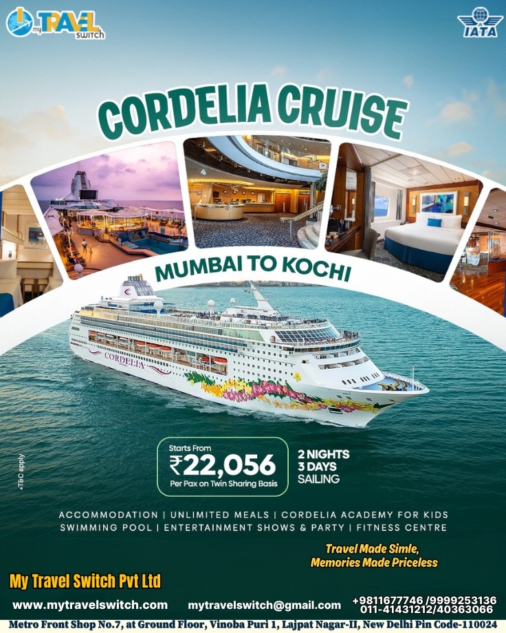Choose the Best Cordelia Cruise Tour Package Services in Lajpat Nagar, South Delhi โ My Travel Switch Pvt Ltd. We offer customised local tours, curated itineraries for school holidays, weekend family getaways, and more.