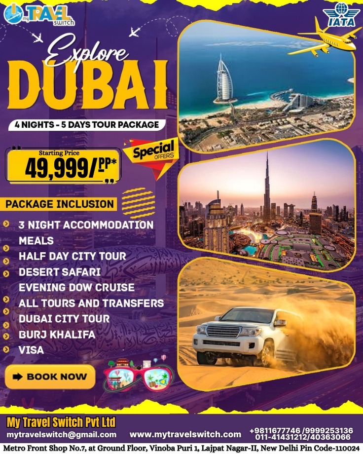 Choose the Best Dubai Tour Package Services in Lajpat Nagar, South Delhi – My Travel Switch Pvt Ltd. We offer customised local tours, curated itineraries for school holidays, weekend family getaways, and more.