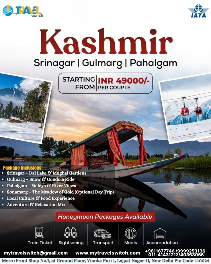 Choose the Best Kashmir Tour Package Services in Lajpat Nagar, South Delhi β My Travel Switch Pvt Ltd. We offer customised local tours, curated itineraries for school holidays, weekend family getaways, and more.