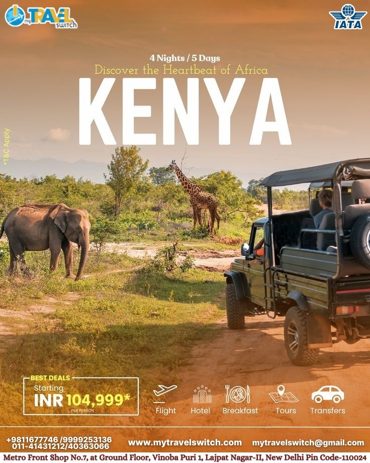 Choose the Best Kenya Tour Package Services in Lajpat Nagar, South Delhi β My Travel Switch Pvt Ltd. We offer customised local tours, curated itineraries for school holidays, weekend family getaways, and more.