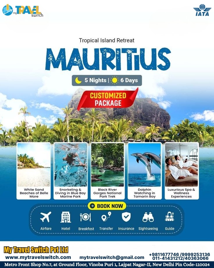 Choose the Best Mauritius Tour Package Services in Lajpat Nagar, South Delhi – My Travel Switch Pvt Ltd. We offer customised local tours, curated itineraries for school holidays, weekend family getaways, and more.