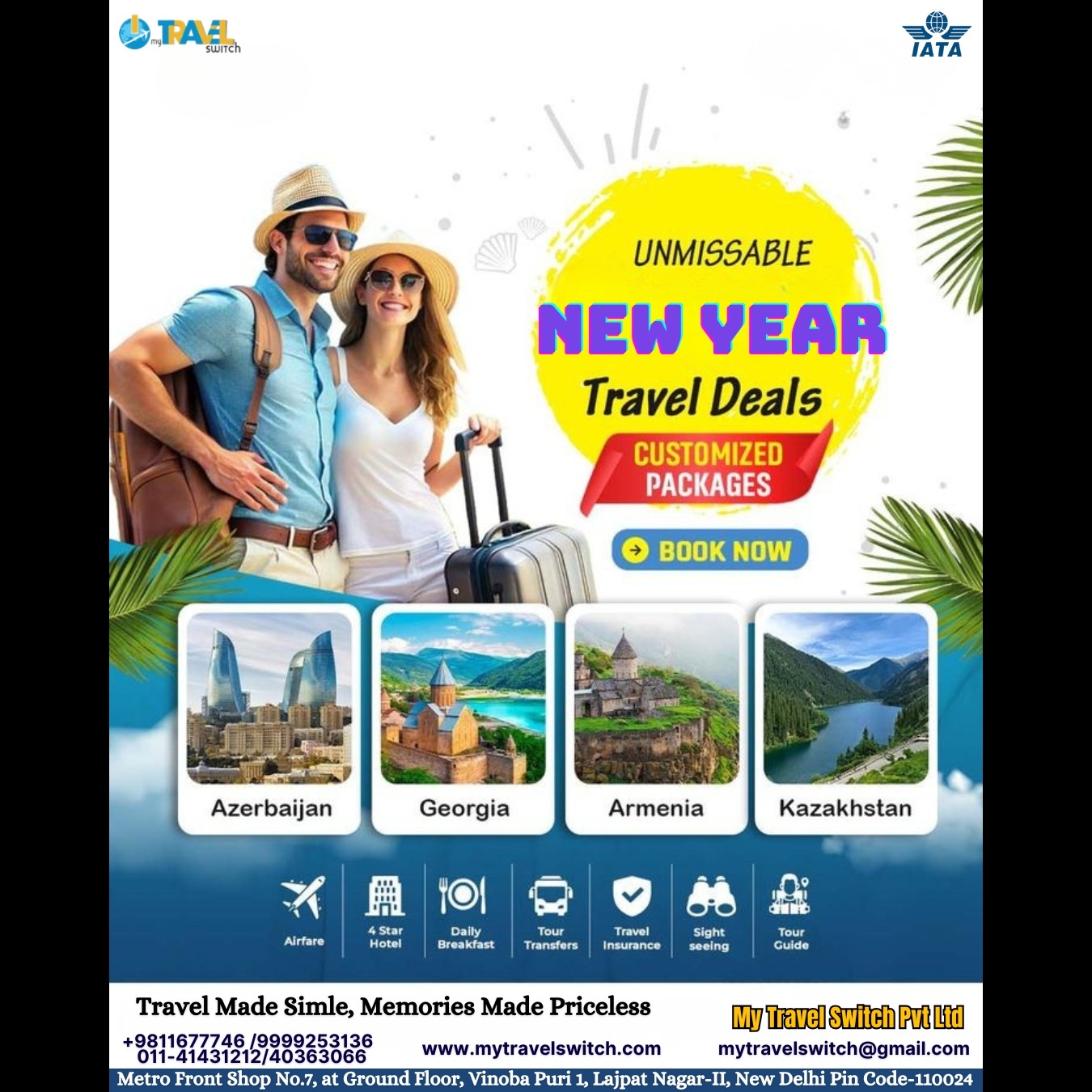Grab unmissable New Year travel deals with customizable holiday packages to Azerbaijan, Georgia, Armenia, and Kazakhstan. Enjoy airfare, 4-star hotels, daily breakfast, sightseeing, transfers, and travel insuranceโpowered by My Travel Switch. Book your dream vacation today!