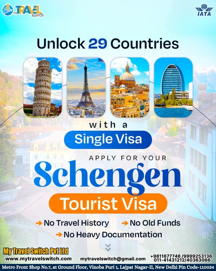 Choose the Best Schengen Visa Services in Lajpat Nagar, South Delhi โ My Travel Switch Pvt Ltd. We offer customised local tours, curated itineraries for school holidays, weekend family getaways, and more.