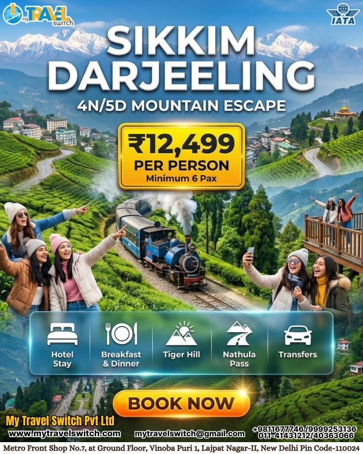 Choose the Best Sikkim Darjeeling Tour Package Services in Lajpat Nagar, South Delhi – My Travel Switch Pvt Ltd. We offer customised local tours, curated itineraries for school holidays, weekend family getaways, and more.