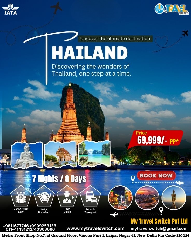 Choose the Best Thailand Tour Package Services in Lajpat Nagar, South Delhi β My Travel Switch Pvt Ltd. We offer customised local tours, curated itineraries for school holidays, weekend family getaways, and more.
