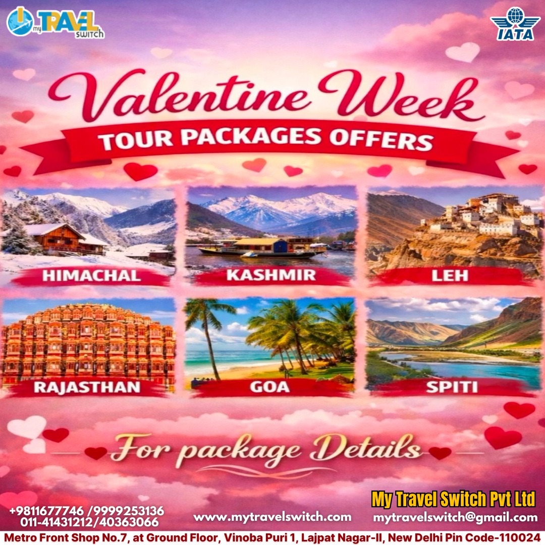 Choose the Best Valentine Special Tour Package Services in Lajpat Nagar, South Delhi โ My Travel Switch Pvt Ltd. We offer customised local tours, curated itineraries for school holidays, weekend family getaways, and more.