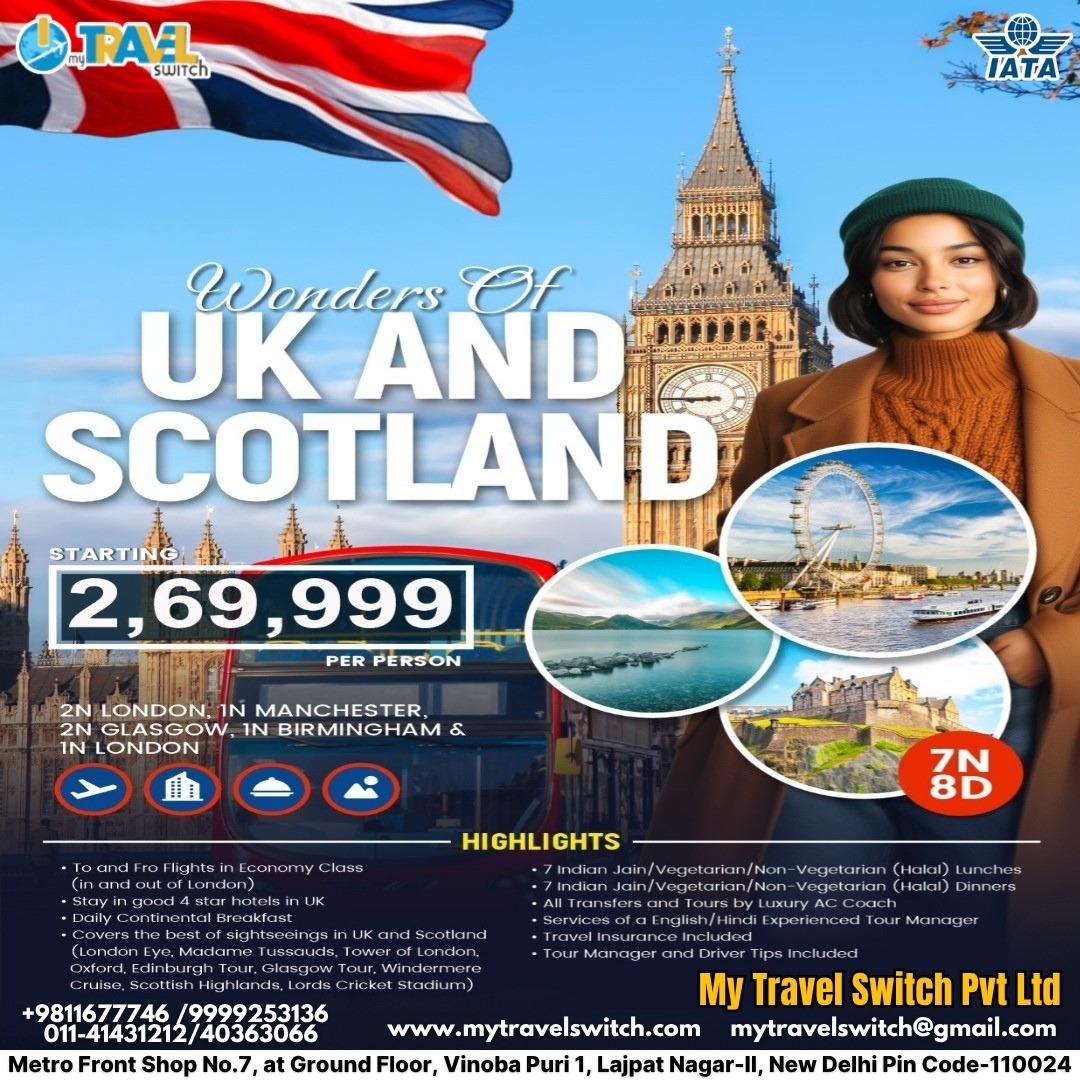 Discover the timeless charm of the United Kingdom and Scotland with our Wonders of UK and Scotland Tour Package. From the royal landmarks of London to the cultural vibes of Manchester, and from the historic castles of Edinburgh to the scenic beauty of the Scottish Highlands, this 7N/8D Europe tour promises unforgettable memories. Perfect for families, couples, and solo travelers, enjoy guided tours, luxurious stays, and authentic Indian meals throughout your journey.